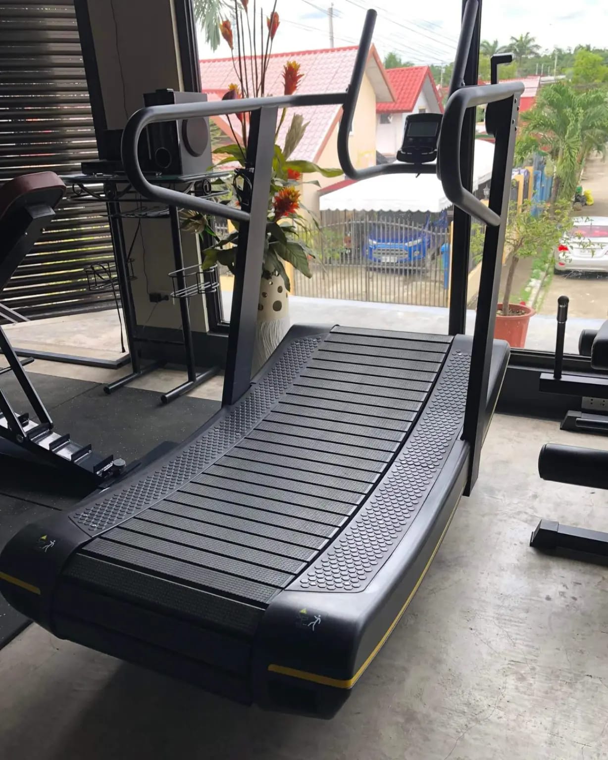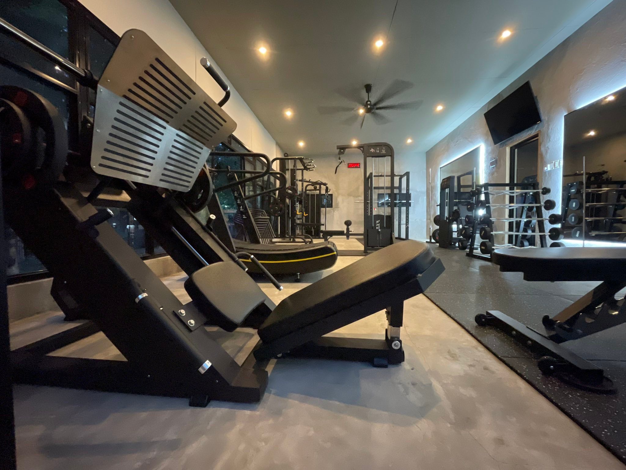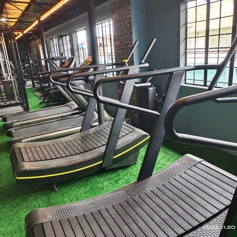 Commercial treadmills, curved runners, bikes, and ellipticals.